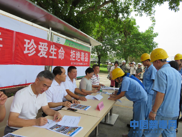 图为企业职工签署禁毒倡议书。中国禁毒网发