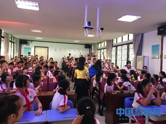 图为学生踊跃回答禁毒相关提问。中国禁毒网发