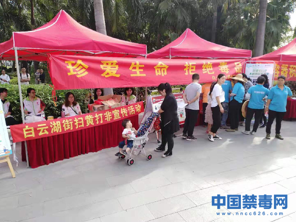 中国禁毒网讯 11月3日,广州市白云区白云湖街道在白云湖公园开展禁毒宣传活动。