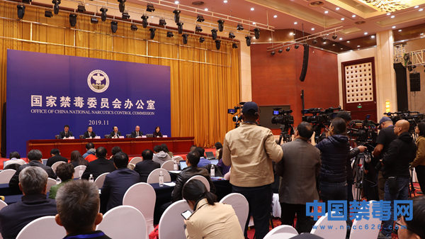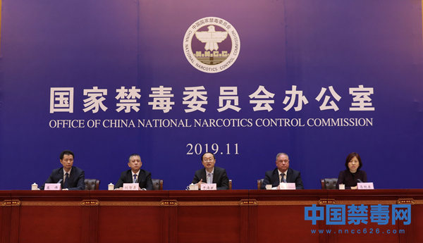 国家禁毒办副主任、新闻发言人高伟主持发布会,国家禁毒办副主任马艳春,河北省邢台市公安局桥西分局副局长刘智勇,美国国土安全部移民海关执法局驻北京办事处参赞Austin Moore出席发布会。