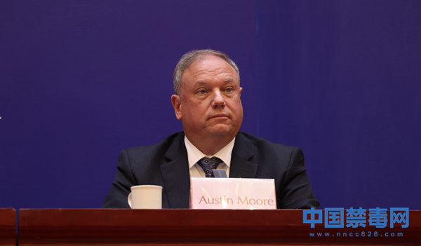 11月7日,美国国土安全部移民海关执法局驻北京办事处参赞Austin Moore出席新闻发布会。当日,河北省邢台市中级人民法院对王某某等人走私芬太尼案件进行一审公开宣判,国家禁毒委员会办公室在邢台举行新闻发布会,通报具体案情和中美两国禁毒执法部门合作打击芬太尼类物质情况。中国禁毒网发
