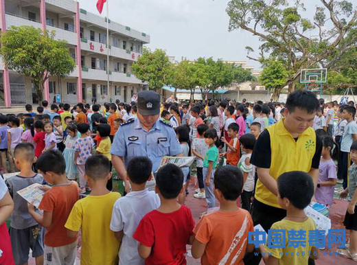 11月8日,禁毒工作人员为横槎小学学生发放禁毒宣传资料。当日,广东省恩平市东成镇禁毒办、综治办、派出所联合社工服务中心在东成镇横槎小学开展禁毒宣传活动。中国禁毒网发