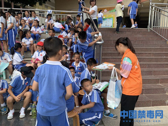 11月7日,禁毒社工向学生发放禁毒宣传资料。当日,深圳市宝安区福海街道稔田社区禁毒社工在辖区学校运动会之际开展“禁毒宣传进校园,为青春保驾护航”禁毒宣传教育活动。中国禁毒网发