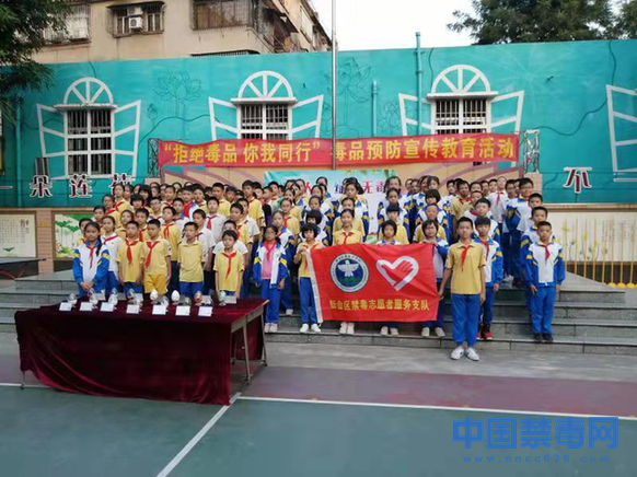 11月7日,禁毒宣传活动结束后,南宁小学学生合影。当日,广东省江门市新会区禁毒办联合江门市禁毒办、圭峰山国家森林管理委员会和会城街道办事处在南宁小学开展毒品预防宣传教育活动。 中国禁毒网发