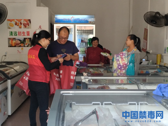 中国禁毒网讯 11月7日,广东省江门市蓬江区禁毒办联合杜阮镇人民政府、江门市朝阳社会工作服务中心等部门,在杜阮镇龙榜市场开展入户禁毒宣传活动。