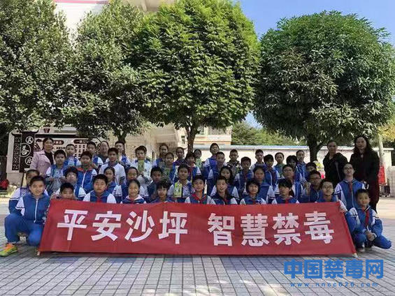 12月3日,活动现场沙坪街道第四小学师生合影。当日,沙坪街道第四小学开展了以“平安沙坪、智慧禁毒”为主题的校园禁毒宣传活动。中国禁毒网发