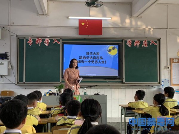 主讲老师为东方小学同学们讲解禁毒知识。由中国禁毒网发起,旨在提高青少年拒毒、防毒意识,创建绿色无毒校园的主题公益活动——“禁毒公益讲堂”,近日来到广东省东莞市虎门镇东方小学。中国禁毒网发