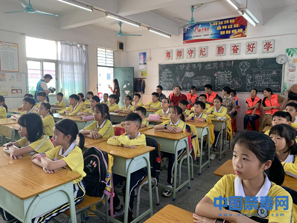 此次课堂由中国禁毒网资深记者编辑担任讲师,向同学们讲述了毒品的危害以及如何防毒拒毒等禁毒知识,并向同学们发放了由中国禁毒基金会提供的阿牛禁毒卡通形象宣传品、纪念品。虎门镇禁毒办还在东方小学布置了禁毒“流动课堂”,向同学们展示了毒品仿真模型、分发了禁毒宣传单页。