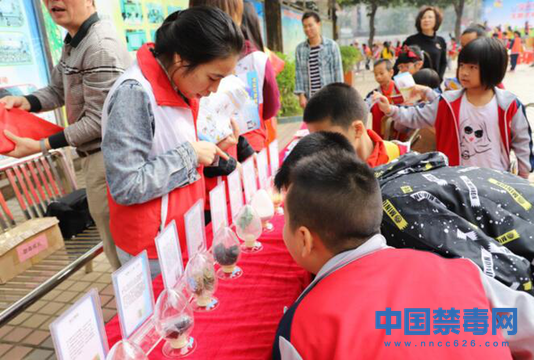 12月25日,年乐夫人学校学生观察仿真毒品模型。当日,广东省恩平市恩城街道在年乐夫人学校开展禁毒宣传活动。中国禁毒网发