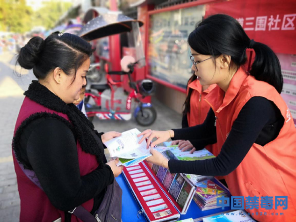 12月27日,禁毒社工向居民讲解禁毒知识。当日,以“不让毒品进我家”为主题的禁毒宣传活动在三围社区金鸿广场开展。中国禁毒网发