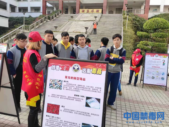 12月26日,广州市铁路职业技术学院学生观看禁毒宣传展板。当日,以“无毒青春,无悔人生”为主题的禁毒宣传活动在广州市铁路职业技术学院开展。中国禁毒网发