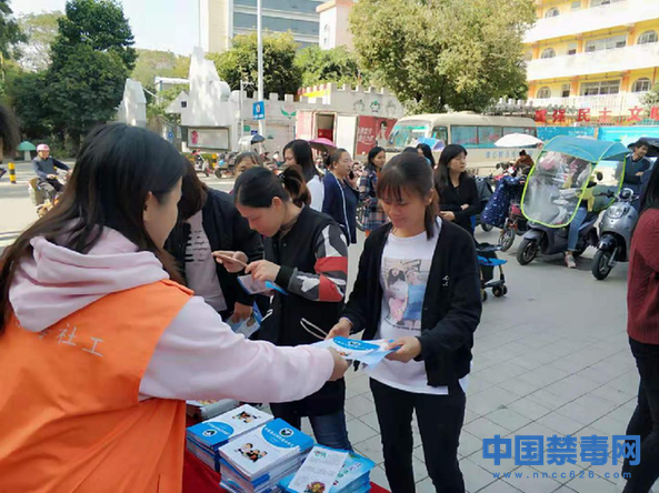 1月3日,禁毒社工向学生家长发放禁毒知识手册。当日,以“培养遵纪守法公民,坚决参与禁毒斗争”为主题的禁毒宣传活动在石岩中心小学门口开展。中国禁毒网发