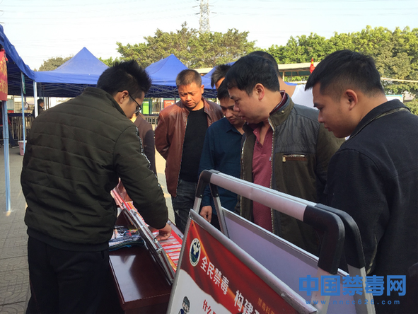1月15日,乘客在禁毒咨询台前了解禁毒知识。当日,广州市白云区白云湖街禁毒办联合白云湖街司法所,在夏茅客运站开展了禁毒宣传活动。中国禁毒网发