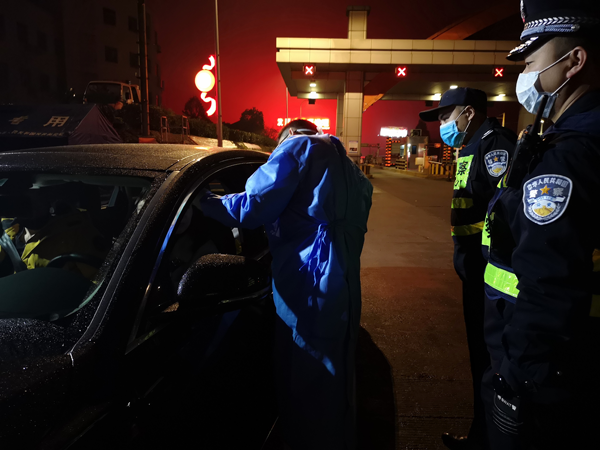 自1月24日福建省启动重大突发公共卫生事件一级响应以来,柘荣县公安局禁毒大队民警全力投入新冠肺炎疫情防控排查工作中,积极配合卫生、防疫部门在柘荣东狮山服务区、高速路口、104国道乍洋路段设卡,对过往车辆、人员进行检测。