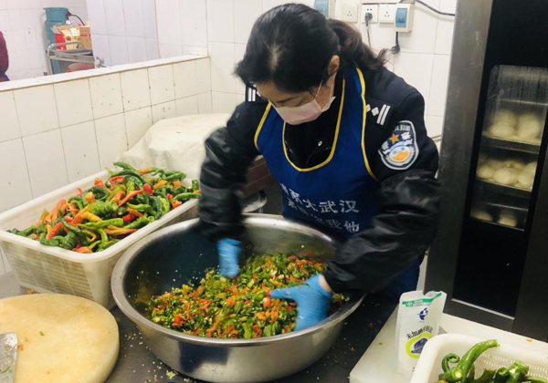 她白天清点物资,查漏补缺,想方设法联系协调膳食供应公司。各大市场、超市中,经常能看到她的身影,她说,“我的同事们都奋战在抗‘疫’一线,我的丈夫、女儿女婿也都是一线警力,在这特殊时期,必须要让大家吃得健康营养卫生。”