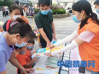 6月10日,禁毒社工向辖区群众发放禁毒宣传册。当日,深圳市宝安区福永街道禁毒社工前往凤凰古村开展禁毒宣传活动。中国禁毒网发