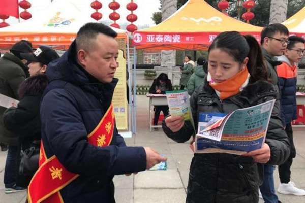叶亮(左)在街头发放禁毒宣传单(资料图)点亮公益戒毒工作室 供图