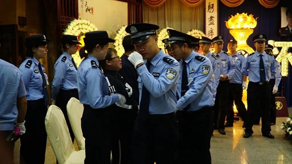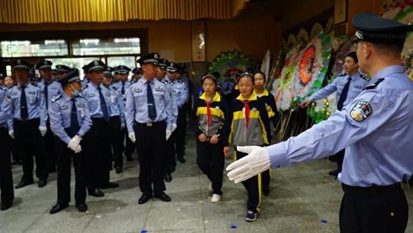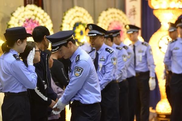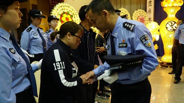 参加告别仪式的民警及群众代表
