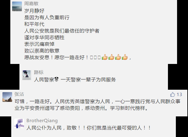 李华同志牺牲后,贵州省委书记、省人大常委会主任孙志刚批示:“向李华同志因公牺牲表示沉痛哀悼,向其家属表示诚挚慰问,请省公安厅做好家属安抚和善后处置工作。”