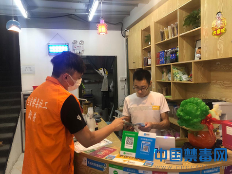 6月16日,禁毒社工向辖区商铺业主发放禁毒宣传册。当日,深圳市宝安区新桥街道禁毒社工前往辖区各商铺,开展禁毒宣传活动。中国禁毒网发