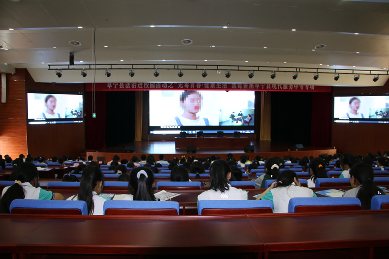 该校学生首先观看禁毒宣传展板,了解毒品的知识和危害。戴文军针对青少年心理发育尚不成熟,好奇心强、意志相对薄弱等特点,生动形象地为大家讲解了毒品对个人健康、家庭、社会的严重危害,引导同学们正确认识毒品的危害,多了解毒品知识,远离酒吧和娱乐场所,慎交身份不明的朋友,珍爱生命,拒绝毒品。随后,阜宁县检查院的严检察官为同学们讲解了青少年吸食毒品案例,并现场播放了校园法治教育系列片“毒染花蕊”。
