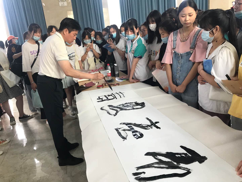 活动现场,戴文军还特地与同学们交流书画方面的心得与技巧,并现场为学校提笔写下“健康生活 青春无毒”书法作品,勉励同学们牢固树立防毒拒毒识毒意识,做遵纪守法的好学生、好公民。