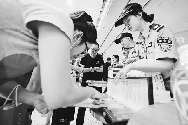 近日,浙江省海宁市公安局禁毒民警与“红太阳”禁毒社工抓住影院复映时机,在影院开展禁毒宣传活动。王振浩 摄