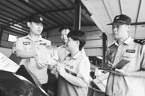 曹县公安局大集派出所民警深入辖区快递行业网点开展禁毒宣传活动。 董西德 摄