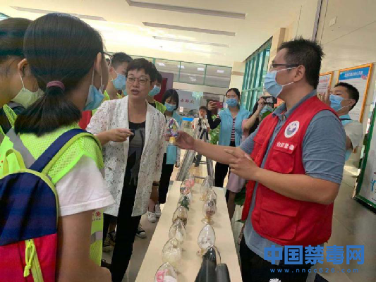 图为禁毒专干向群众展示毒品仿真模型。中国禁毒网发