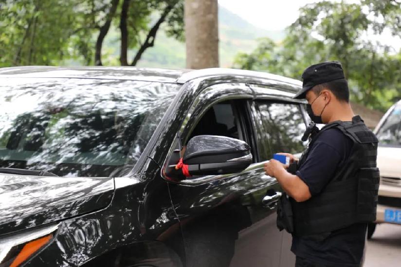 9时15分,气温逐渐升高,过路的车辆开始增多,检查站内停了两辆轿车,查缉队员需要进一步核实车上人员身份信息。虽然每名队员的分工不同,但只要遇到困难,其他队员都会主动帮忙。