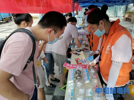活动现场,禁毒社工通过发放禁毒宣传单和校园禁毒教育读本、展示毒品仿真模型等方式,向来往群众讲解毒品种类、危害及举报奖励办法。同时,禁毒社工呼吁群众要提高识毒、防毒、拒毒意识,珍爱生命,远离毒品。