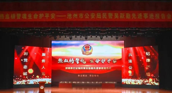 10月20日下午,由安徽省池州市文明办、池州市公安局举办的因公牺牲民警吴跃勤同志先进事迹报告会,在池州市委党校大型报告厅举行。