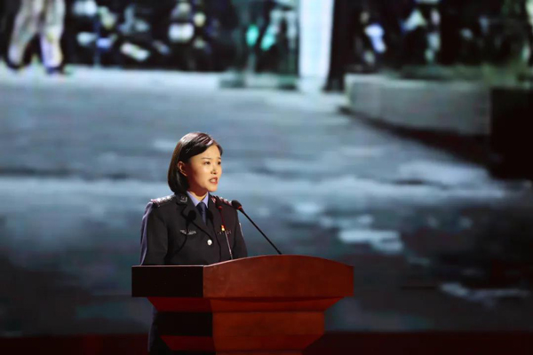 池州市公安局经侦支队副支队长蒋红文的代讲人反恐支队民警李丹。