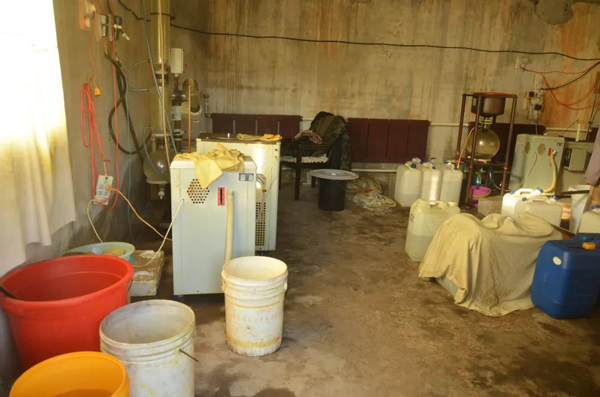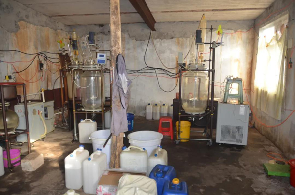 收网时机已然成熟后,12月21日,专案组根据预先制定好的抓捕方案,一举将包括娄某在内的4名犯罪嫌疑人全部抓获,并当场缴获毒品甲卡西酮13公斤(俗称“丧尸药”),管制类易制毒化学品1-苯基1-丙酮75公斤,盐酸100公斤、溴素125公斤,其他制毒原料约2吨,以及反应釜、离心机等制毒工具和设备,扣押毒资11万元。