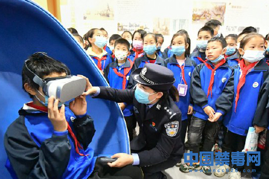 图为禁毒民警组织学生们体验VR禁毒设备。中国禁毒网发