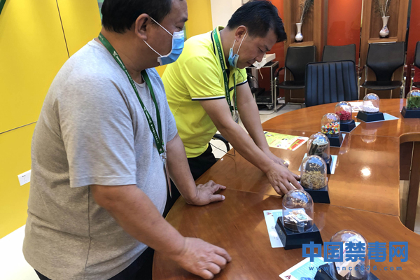 图为禁毒专干摆放毒品仿真模型。中国禁毒网发