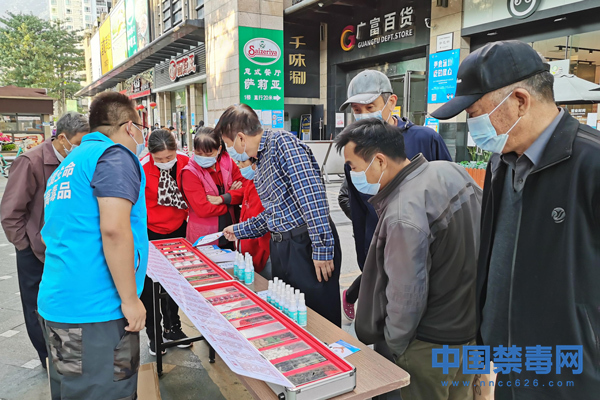 活动期间,禁毒社工通过摆放毒品仿真模型、发放禁毒宣传资料等方式,向居民讲解毒品种类、危害、防范毒品技巧,传播禁毒普法知识。同时,禁毒社工提醒居民要多掌握毒品知识,认清毒品危害,珍爱生命,远离毒品。