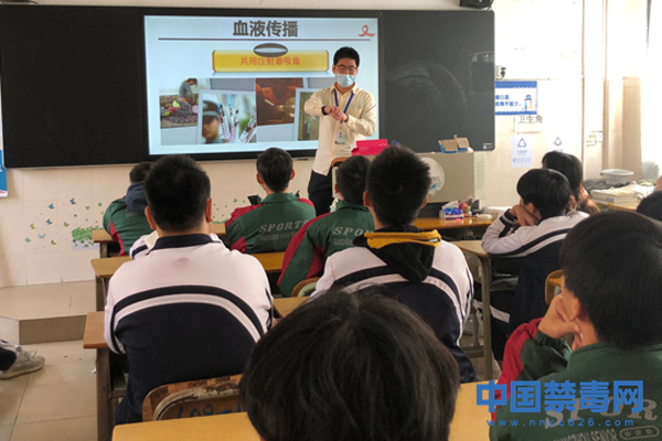 图为禁毒志愿者向学生讲解禁毒防艾相关知识。中国禁毒网发