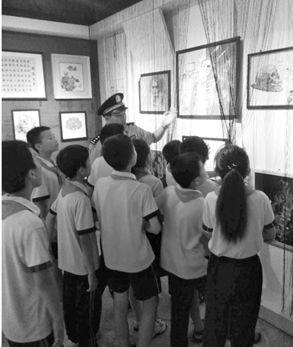 江西省公安机关在各地建设了许多颇具特色的禁毒宣传教育基地,经常性开展禁毒教育。图为民警在基地宣讲禁毒常识。