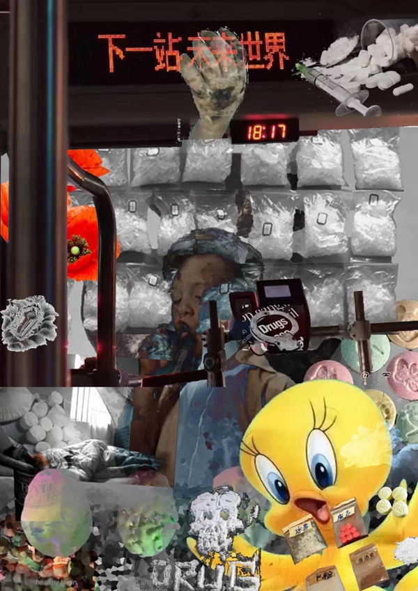 当一粒粒药丸在身体里着床,当一管管毒液注入肉体,通过恶之花缠绕的时间的沙漏,鲜活的生命变成一个个恐怖的骸骨。天空中布满了黑色的阴霾,死神在随风起舞,生命的活力被渐渐掏空,曾经意气风发的少年郎,变成一个个骨瘦如柴的躯体。