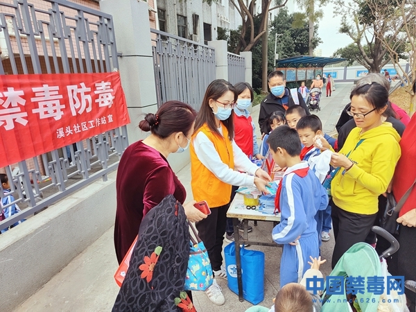 中国禁毒网讯(通讯员 王海波)1月22日,深圳市宝安区松岗街道禁毒办联合溪头社区工作站组织禁毒社工在社区球场开展以“全民动员 禁毒防毒”为主题的禁毒宣传活动。