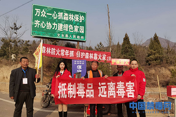 在西山公园,文水县禁毒办组织文水县社区戒毒社区康复中心禁毒社工,同护林防火工作人员一起开展禁毒宣传活动。在宣传禁毒的同时,也为大家树立护林防火的意识。