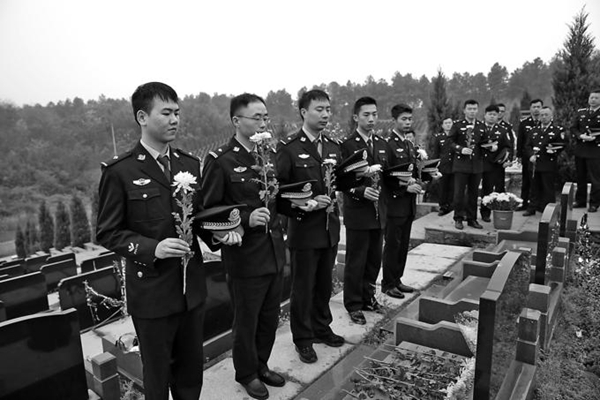 3月30日,在全国公安系统二级英雄模范、安徽省池州市公安局贵池分局禁毒大队大队长吴跃勤的墓前,百余名民警在池州市公安局组织下,整齐列队,脱帽哀思,献花鞠躬,表达对英模的崇高敬意。