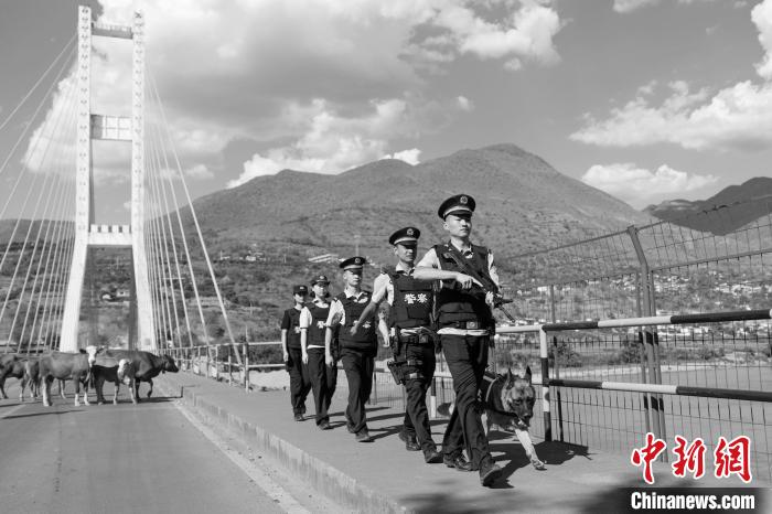 图为滨哒与民警一道巡逻。 曼海边境检查站提供
