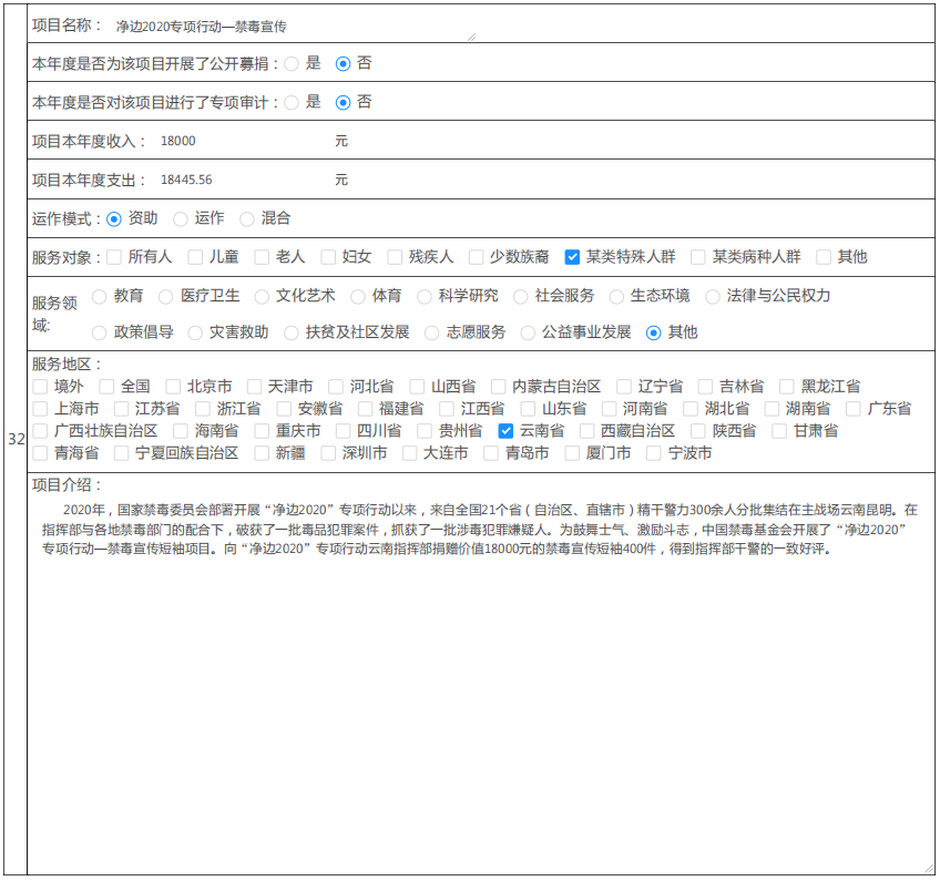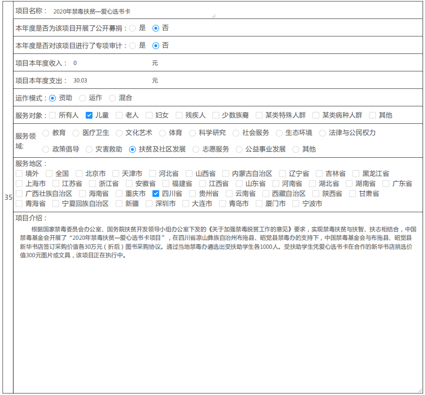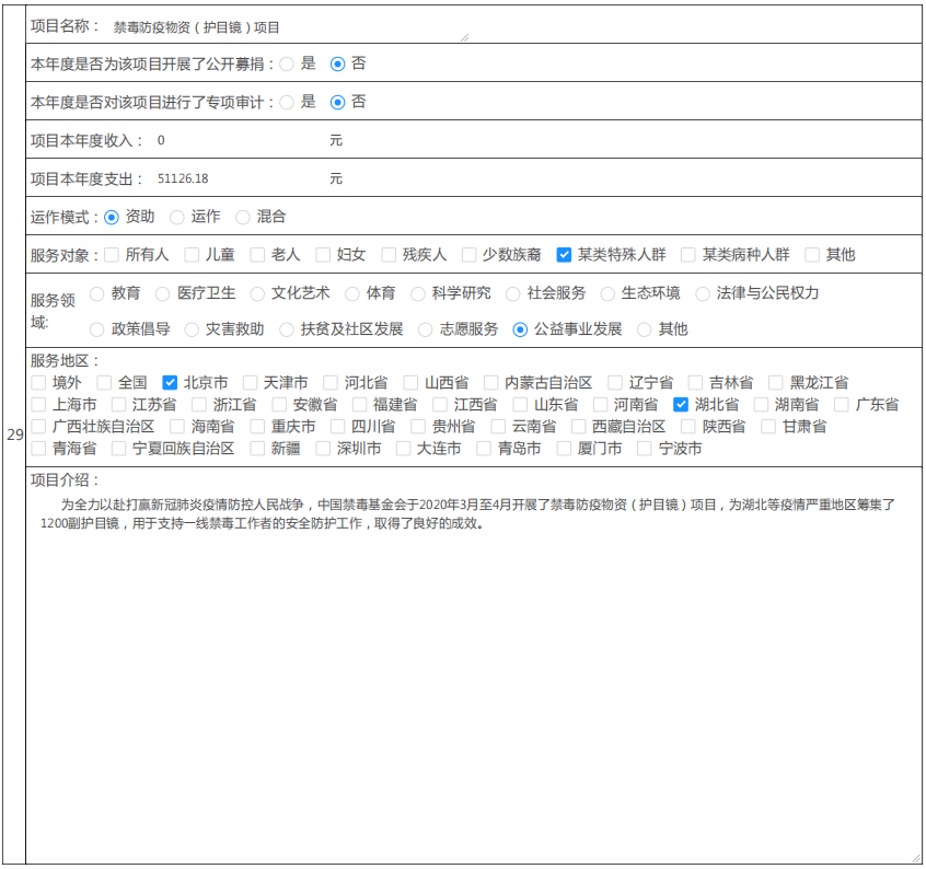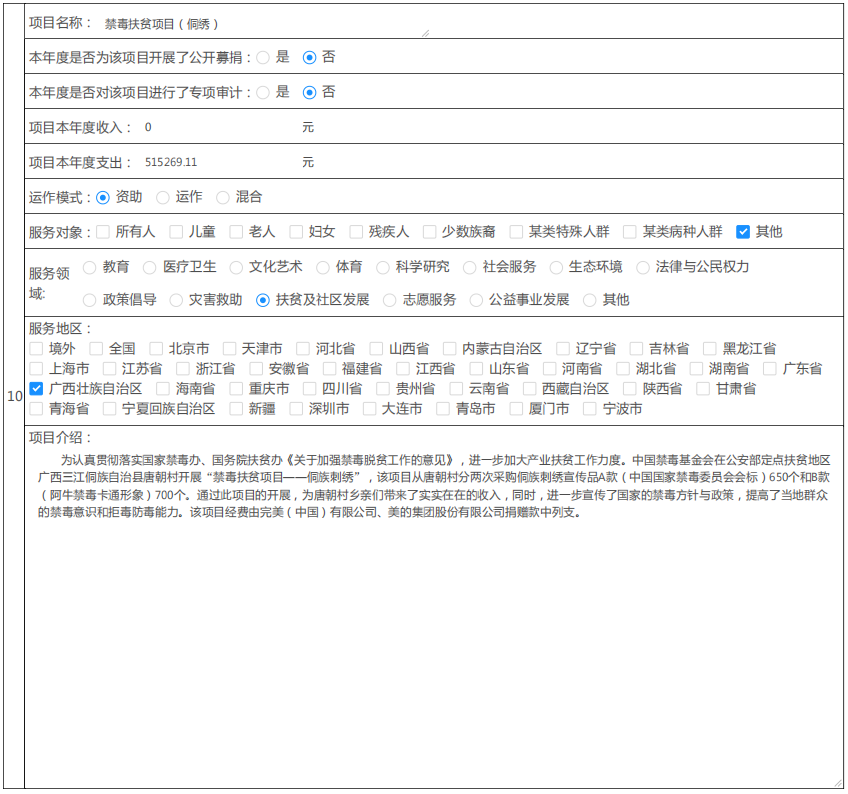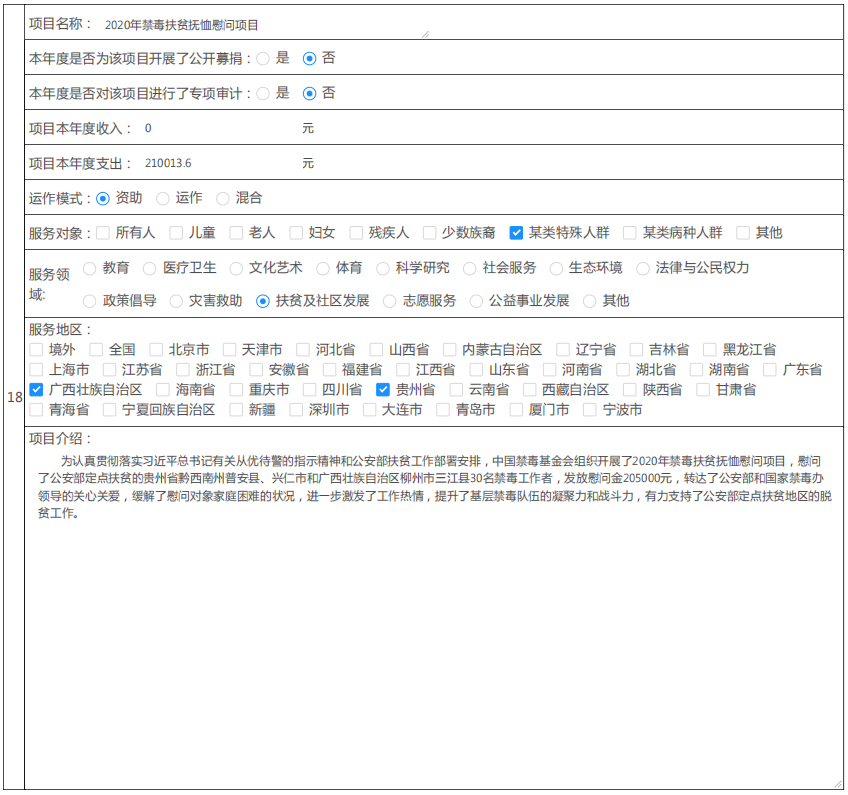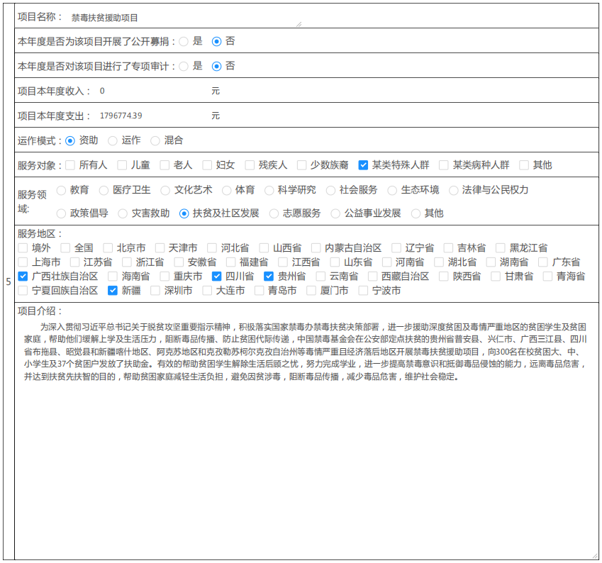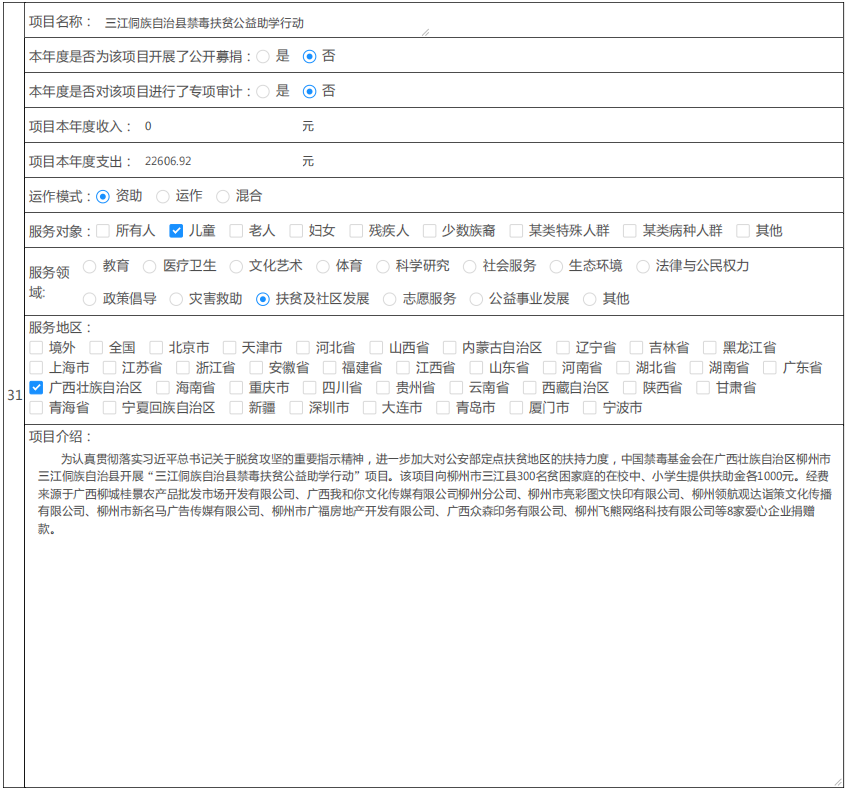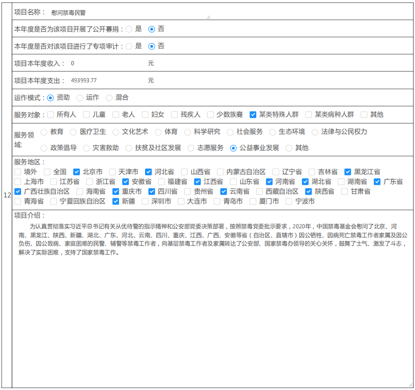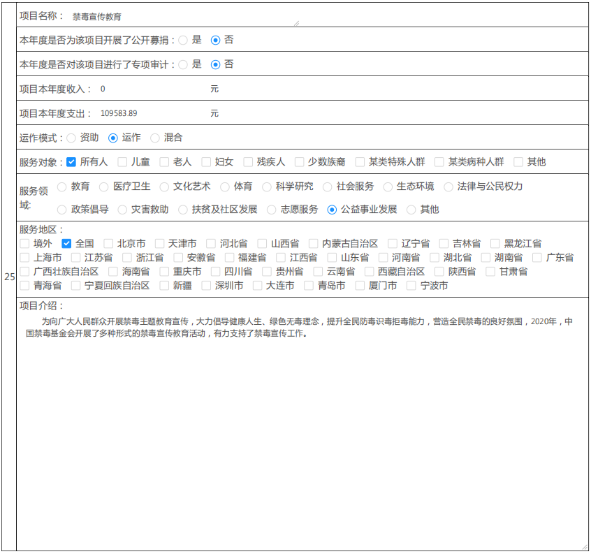 中国禁毒基金会2020年度公益慈善项目开展情况