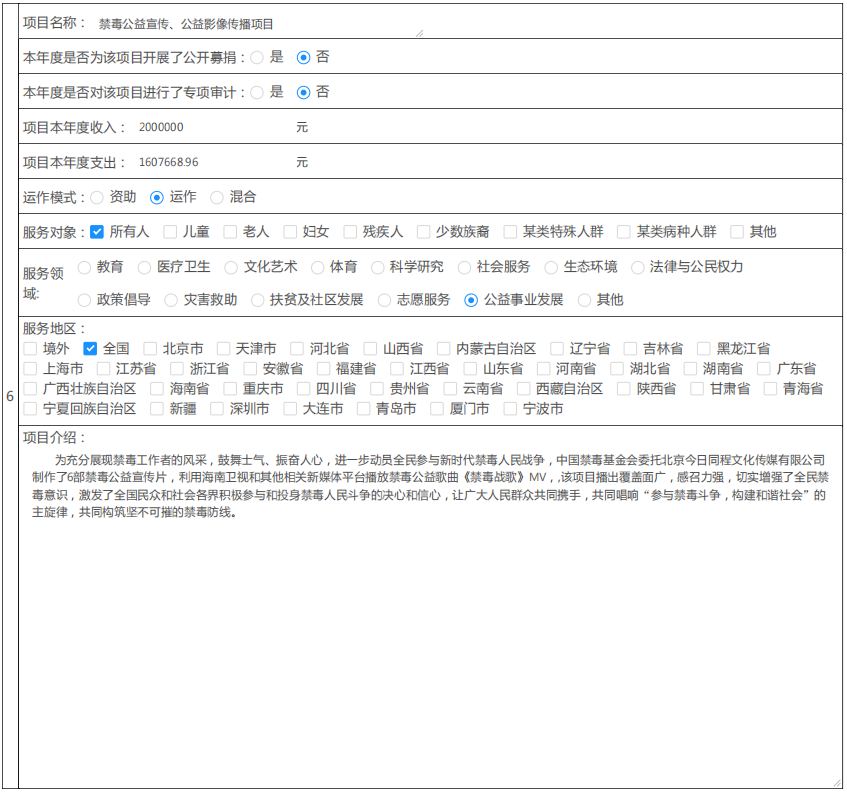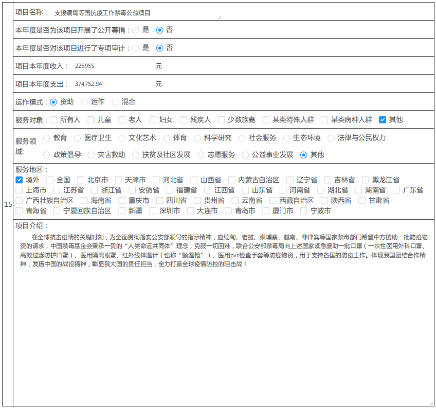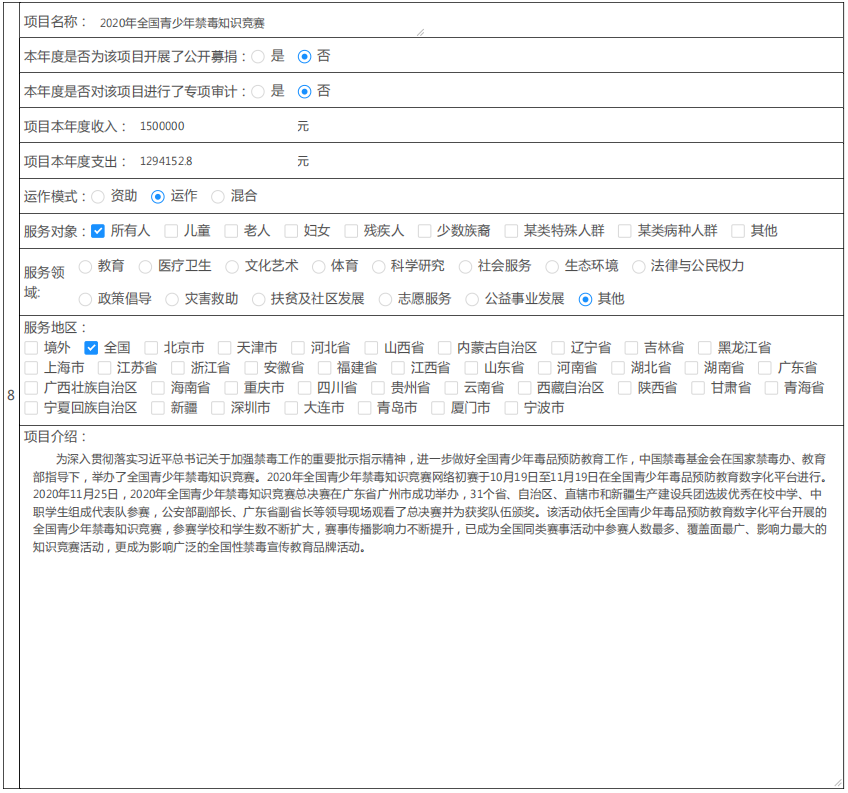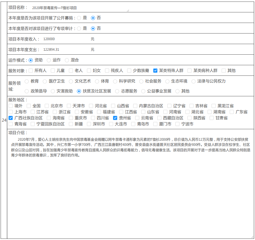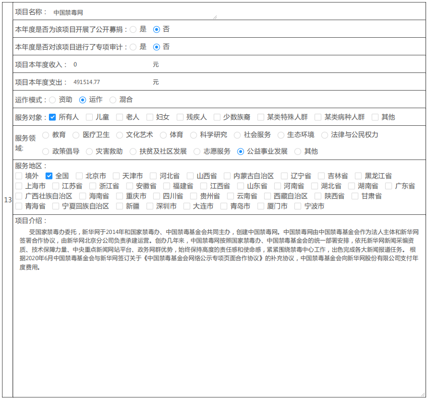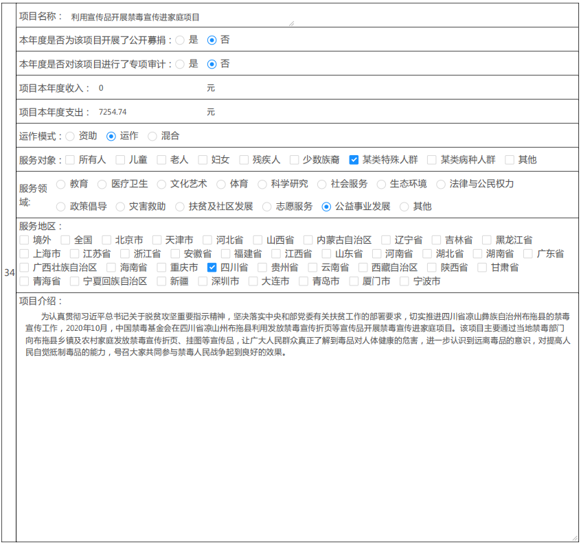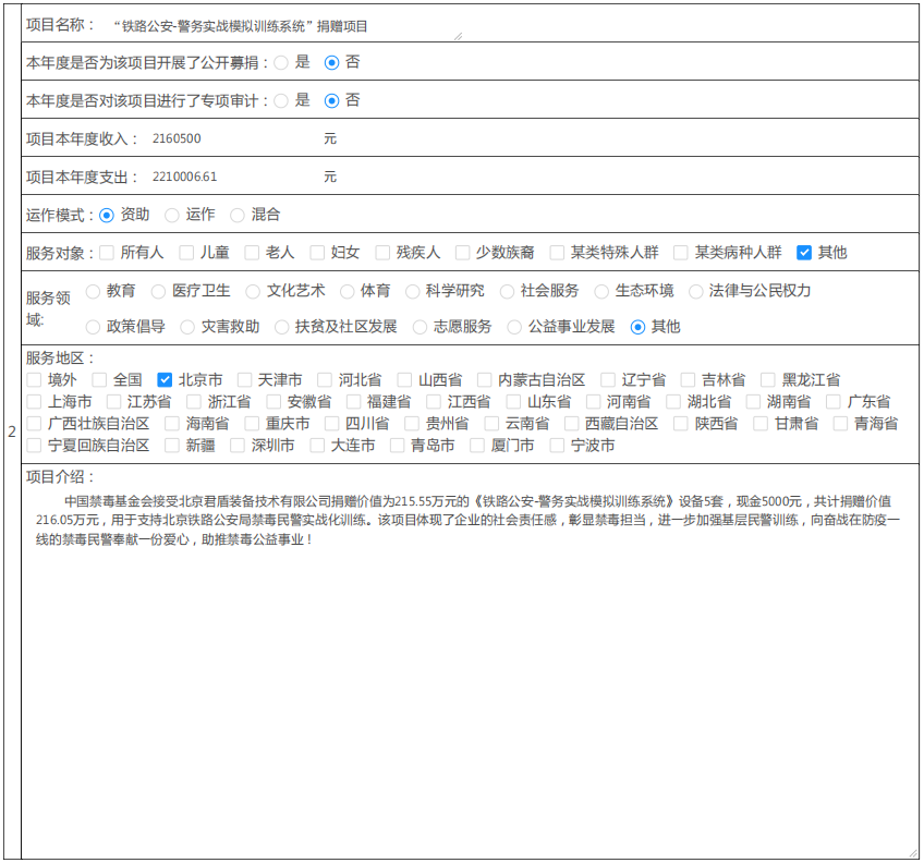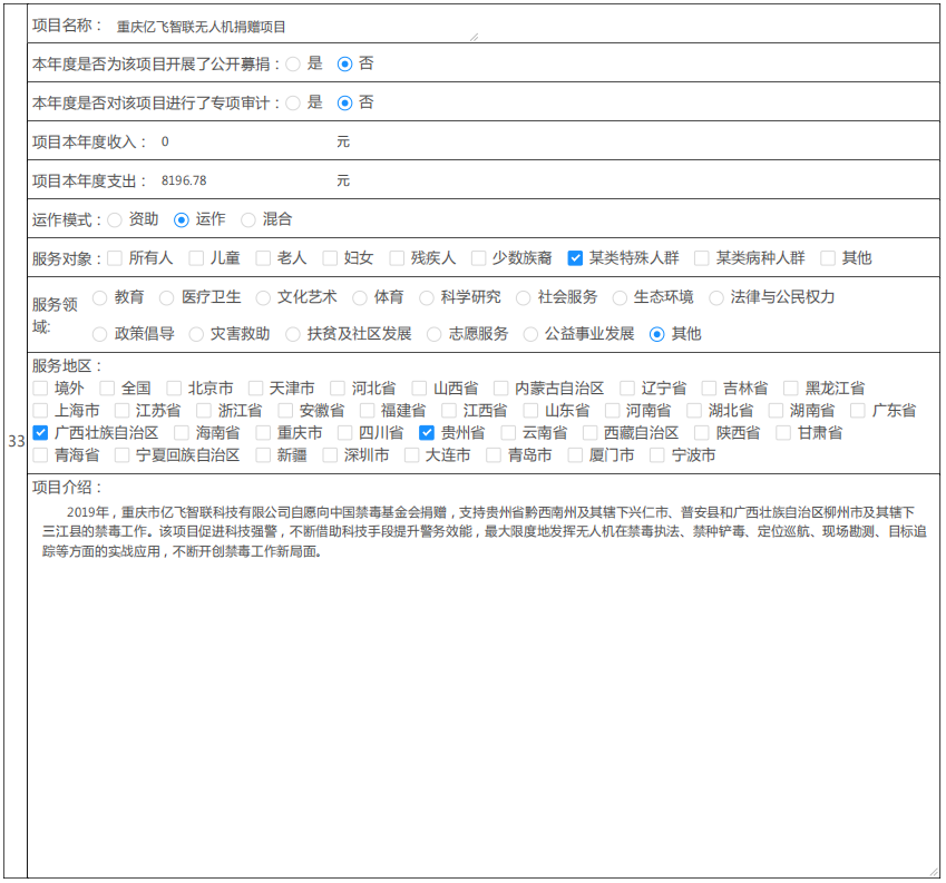 中国禁毒基金会2020年度公益慈善项目开展情况
