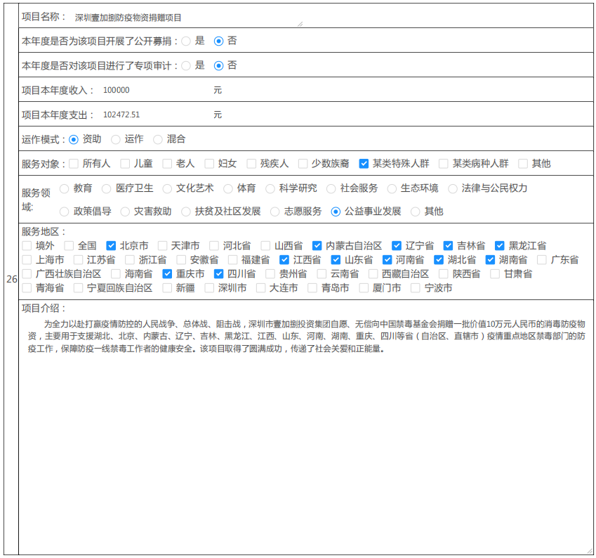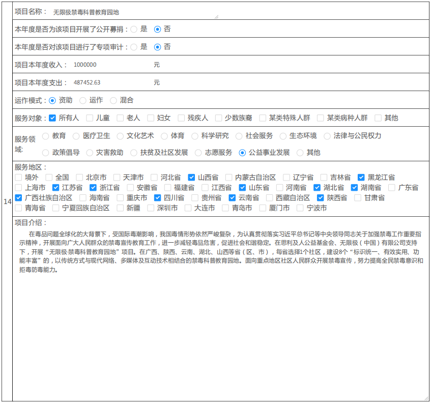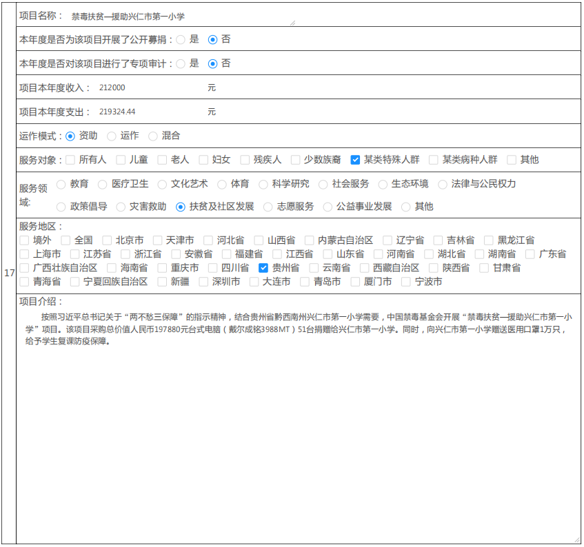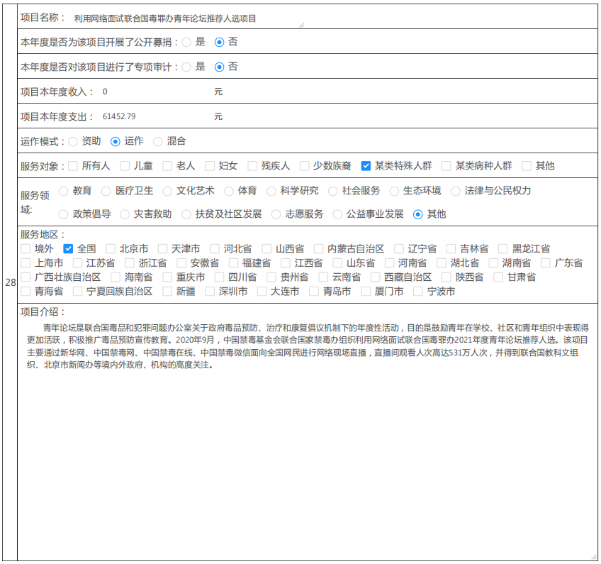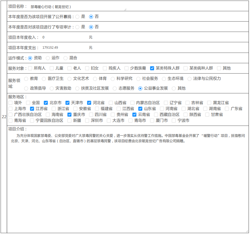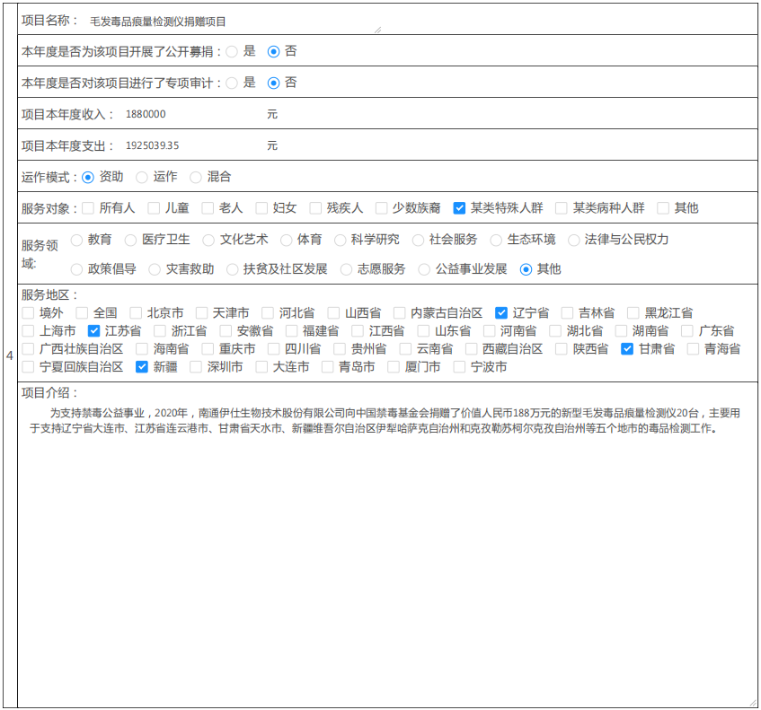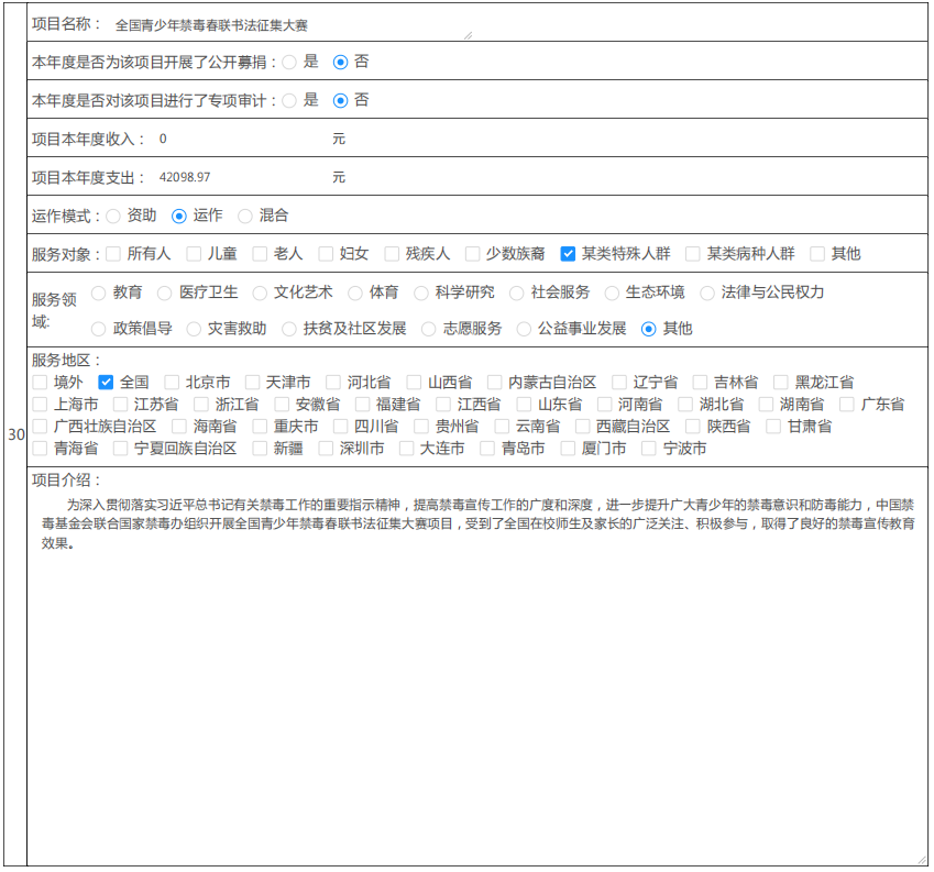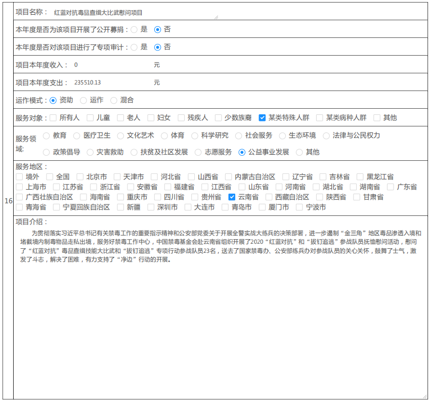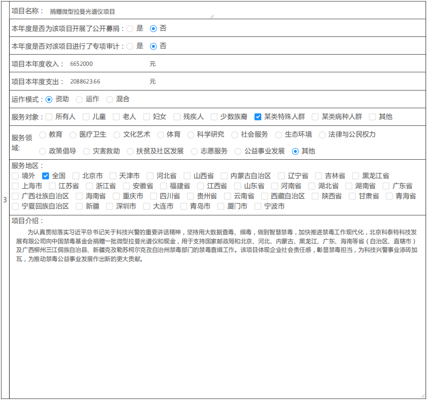 中国禁毒基金会2020年度公益慈善项目开展情况