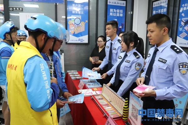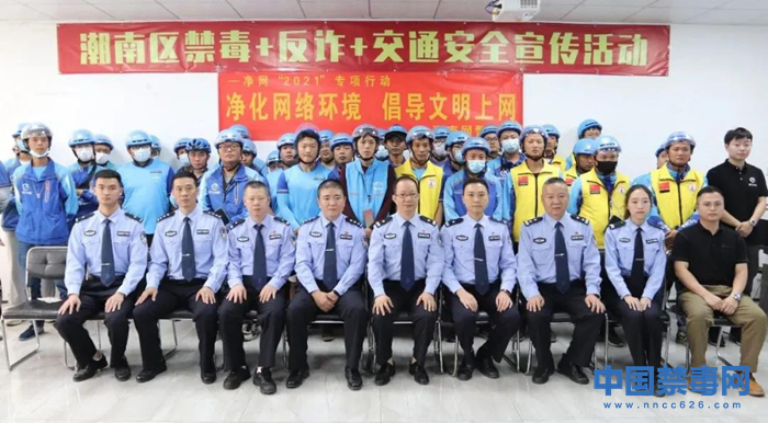 中国禁毒网讯 4月28日,一场禁毒、反诈、交通安全宣传活动在广东省汕头市某生活平台公司潮南分公司举行。