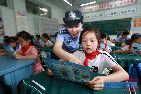 图为民警正在向学生们普及禁毒相关知识。 中国禁毒网发