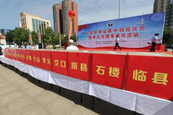 6月3日,为纪念第34个国际禁毒日和虎门硝烟182周年,根据公安部关于公安机关缴获毒品管理的相关规定,经报请省公安厅批准同意,吕梁市公安局对全市公安机关近年来办理的不起诉决定或者判决、裁定(含死刑复核判决、裁定)发生法律效力、或者行政处罚决定已过复议诉讼期限的案件涉案毒品(冰毒、海洛因、大麻、罂粟等)进行集中销毁,涉及毒品总净重75430.80382克。